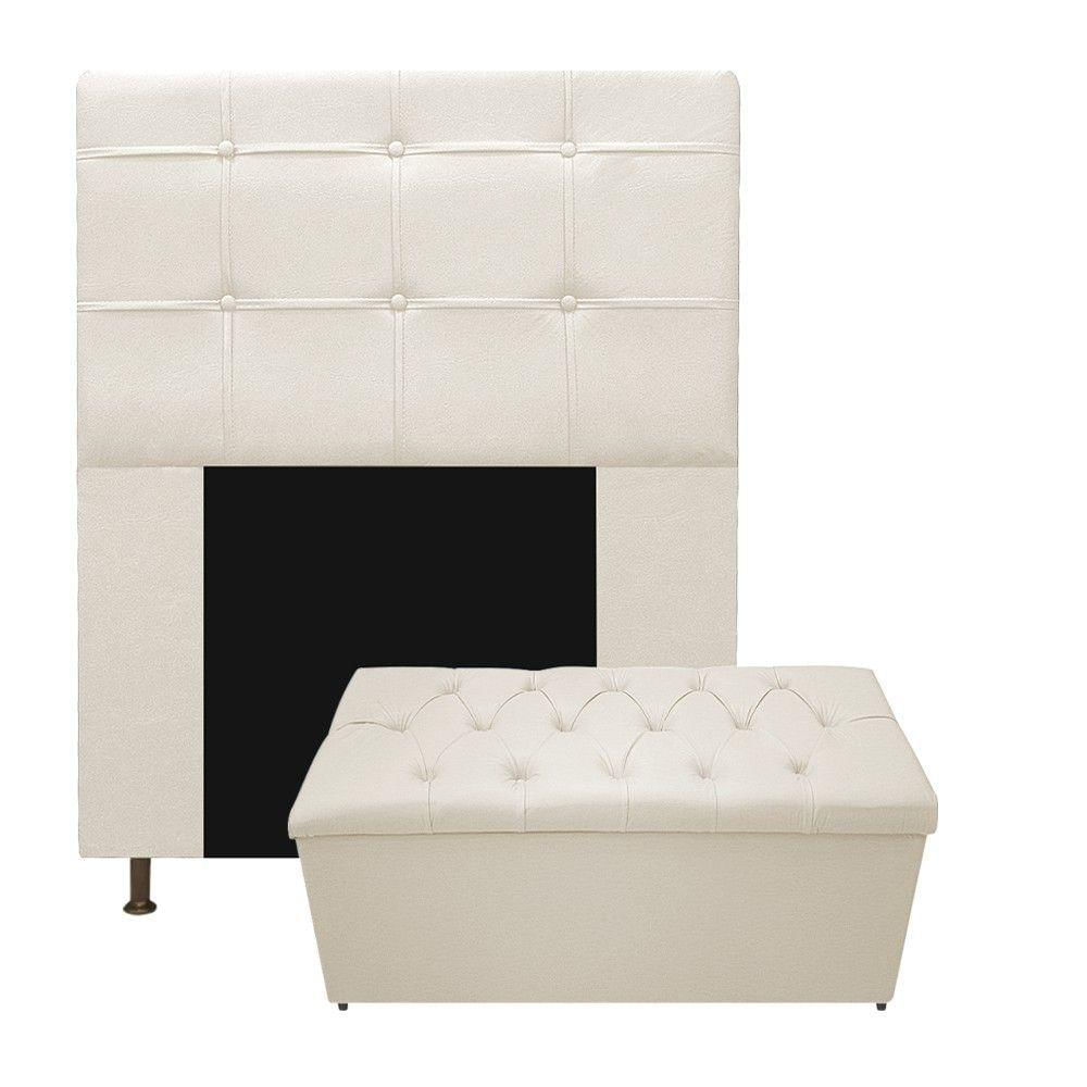 Kit Cabeceira E Calçadeira Baú Estofada Mel 90 Cm Solteiro Com Capitonê Corano Bege - Doce Sonho Móveis