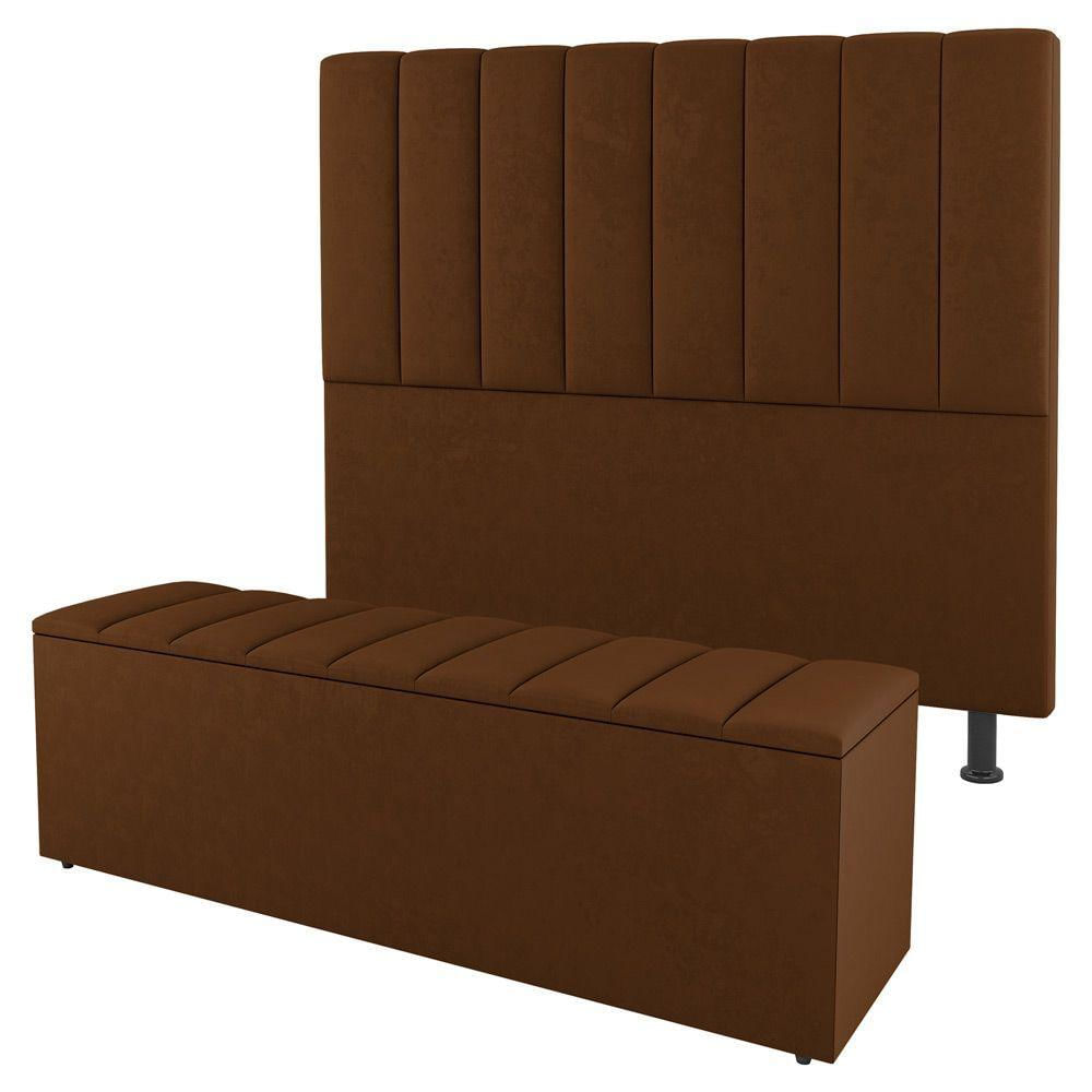 Kit Cabeceira E Baú Cama Box Casal Cora 140cm Suede Terracota - Desk Design