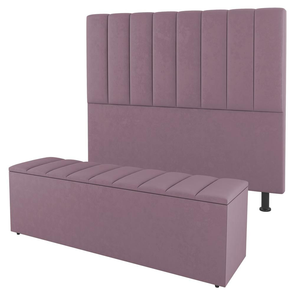 Kit Cabeceira e Baú Cama Box Casal Cora 140cm Suede Rosé - Desk Design