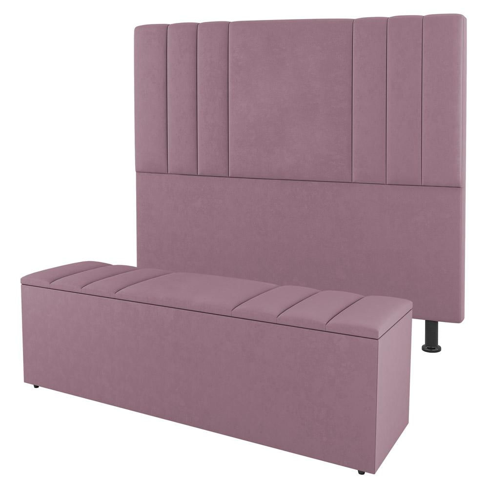 Kit Cabeceira e Baú Cama Box Queen Size Grace 160cm Suede Rosé - Desk Design