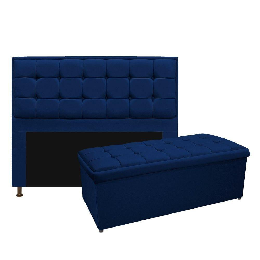 Kit Cabeceira e Calçadeira Copenhague Queen Size Suede Azul Marinho