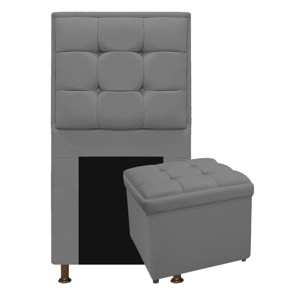 Kit Cabeceira e Calçadeira Copenhague 100 cm Solteiro Corano Cinza
