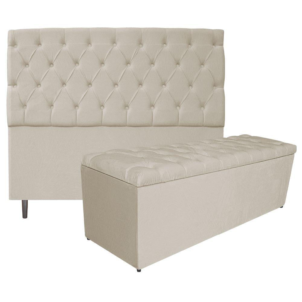 Kit Cabeceira E Calçadeira Liverpool 195 Cm King Size Suede Bege Adj Decor