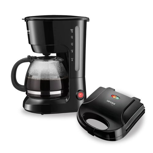 Kit Cafeteira Elétrica 18 Xícaras PCA018 com Sanduicheira Grill PSD121 Lenoxx Preta 127V 127V