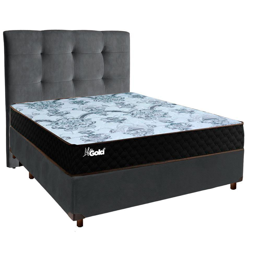 Kit Cama Box + Cabeceira + Colchão Casal Molas Ensacadas - Life Gold - Paropas