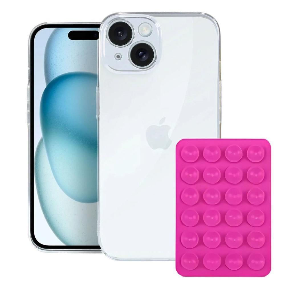 Kit Capa Crystal Slim Para Iphone 15 + Ventosa Rosa Gshield