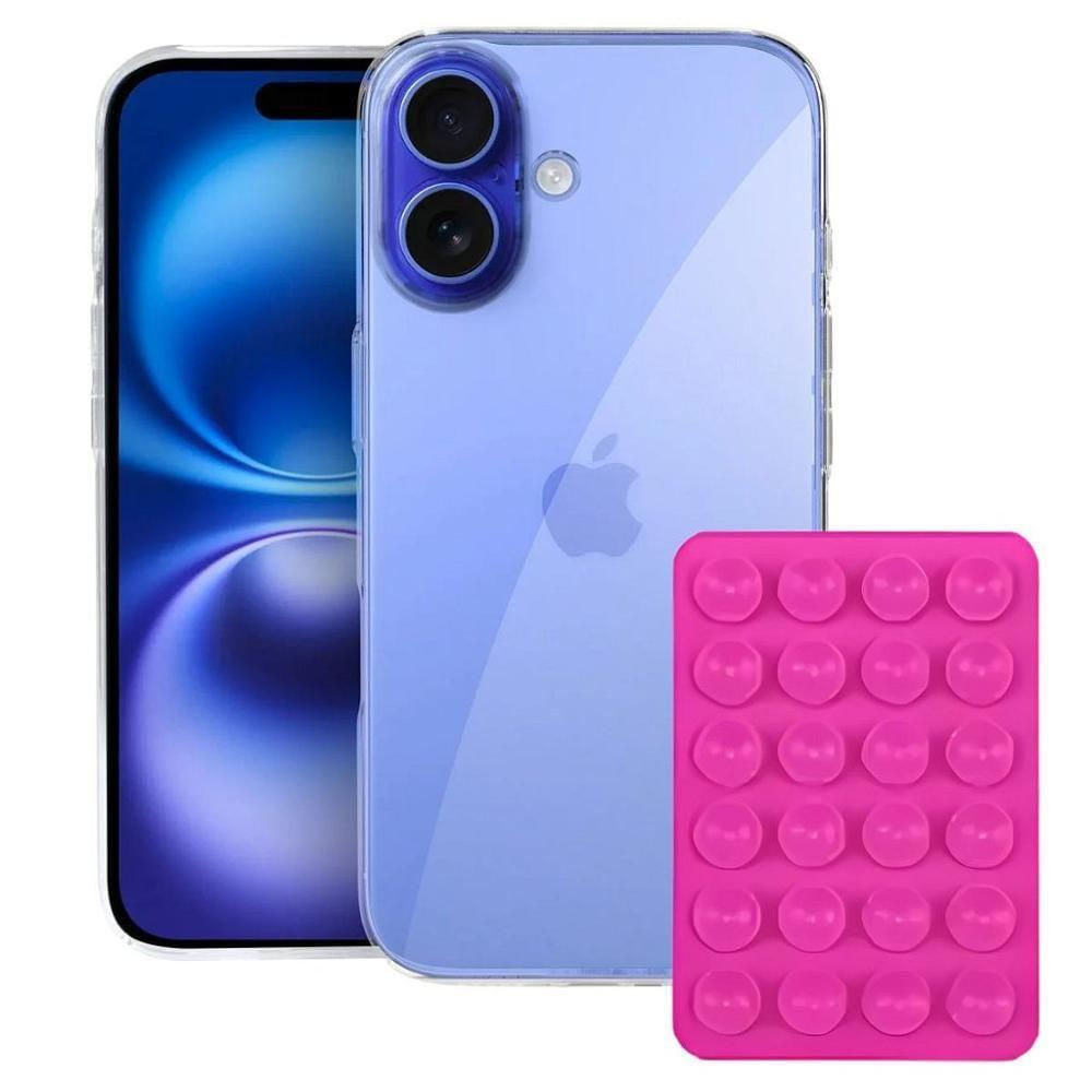 Kit Capa Crystal Slim Para Iphone 16 + Ventosa Rosa Gshield