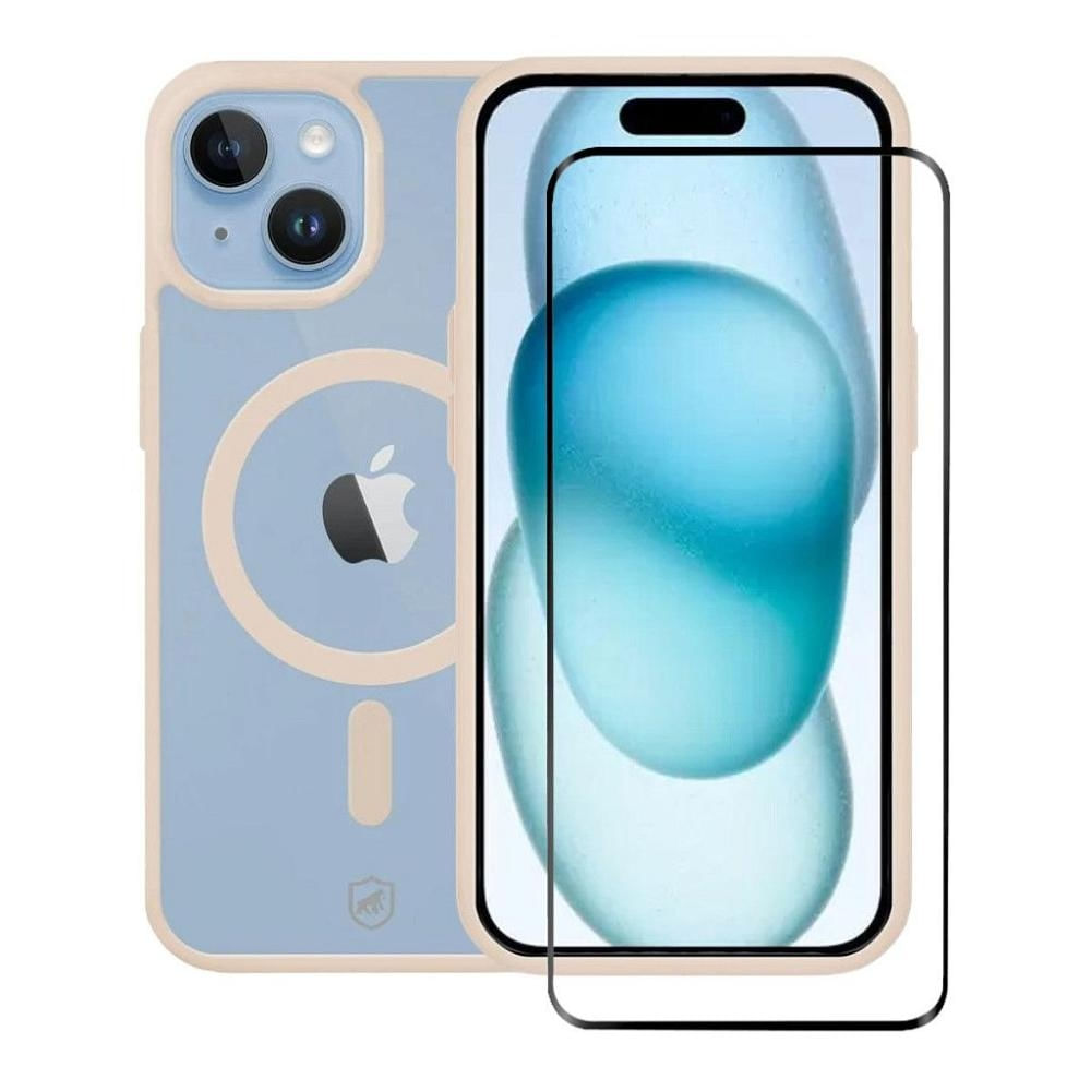 Kit Capa Magsafe Rosa e Pelicula Coverage 5D Pro Preta para iPhone 15 - Gshield