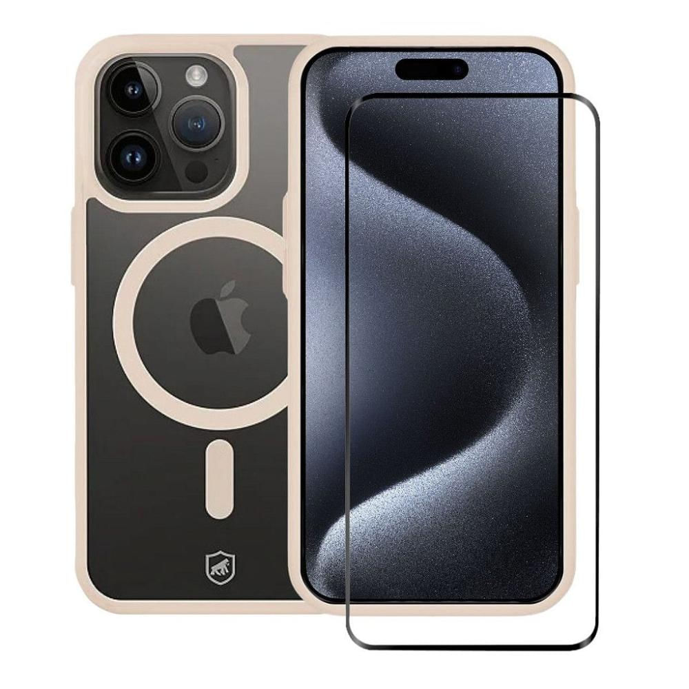 Kit Capa Magsafe Rosa e Pelicula Ultra Glass Preta para iPhone 15 Pro Max - Gshield