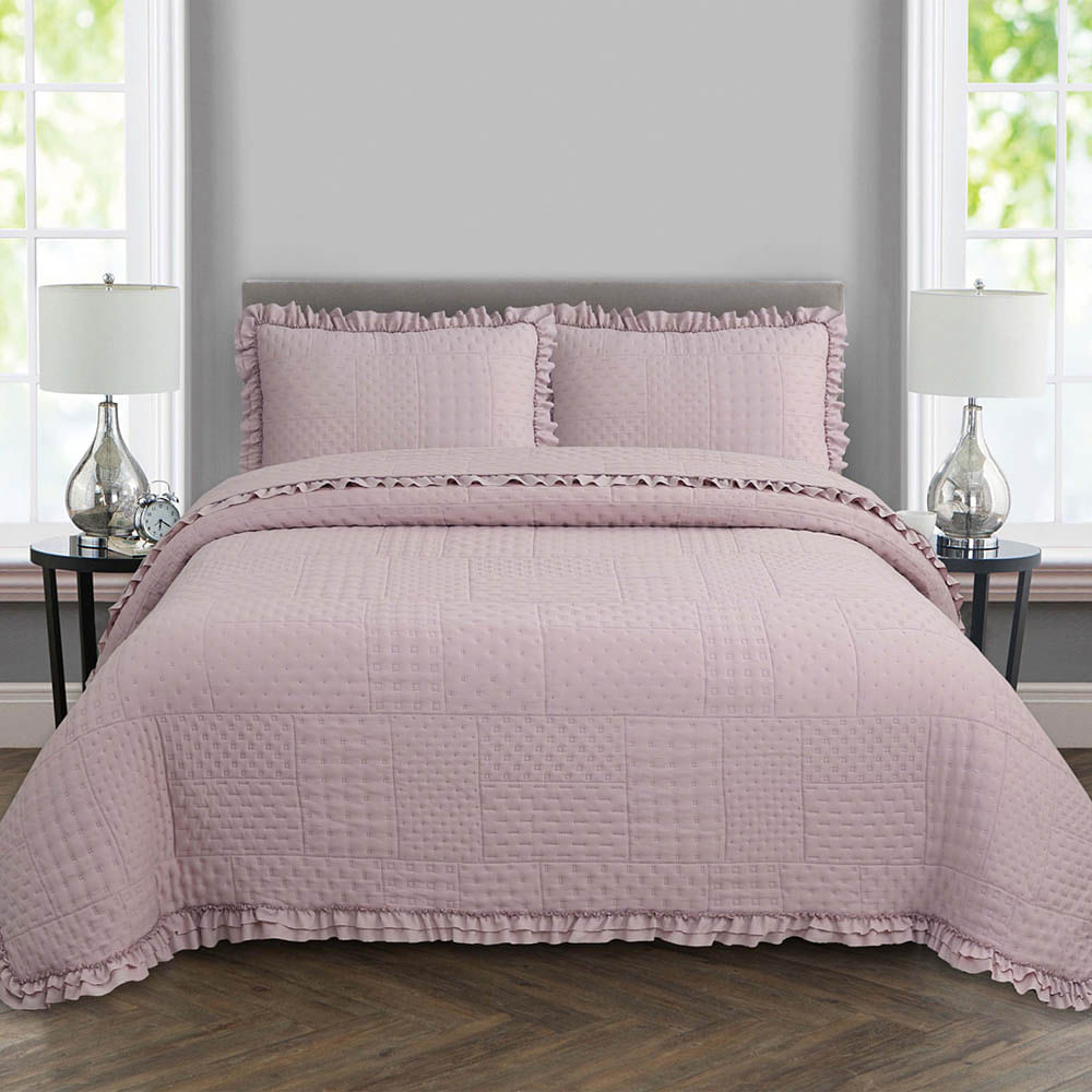 Kit Cobre Leito Colcha Allegra King 3 Peças Percal 300 Fios C/ Babado - Rose