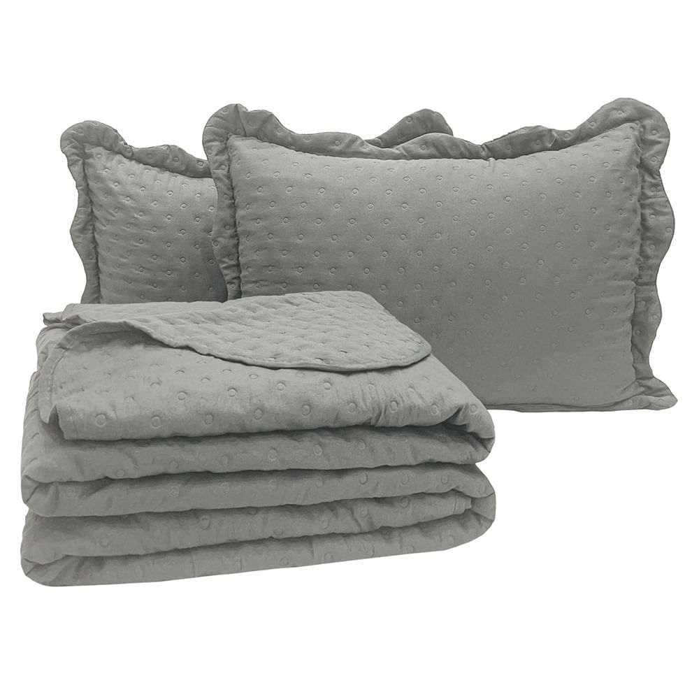 Kit Cobre Leito Colcha Alvorada Queen 3 Peças Percal 300 Fios Clássico - Cinza