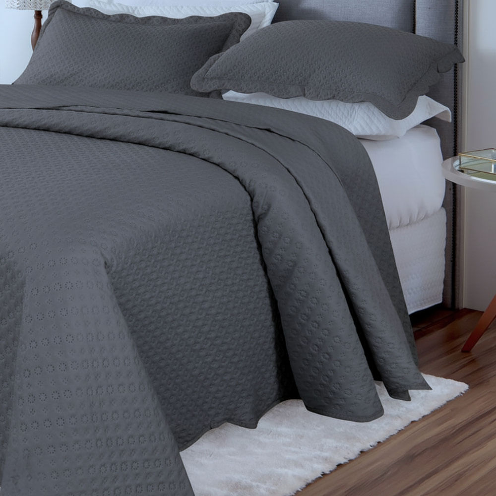 Kit Cobre Leito Colcha Basic Queen 3 Peças Dupla Face Liso Classic - Cinza Bolinha - 100% Poliéster