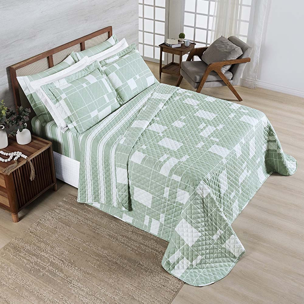 Kit Cobre Leito Colcha Benim King 3 Peças Dupla Face Micropercal 400 Fios - Adria Verde - 100% Poliéster