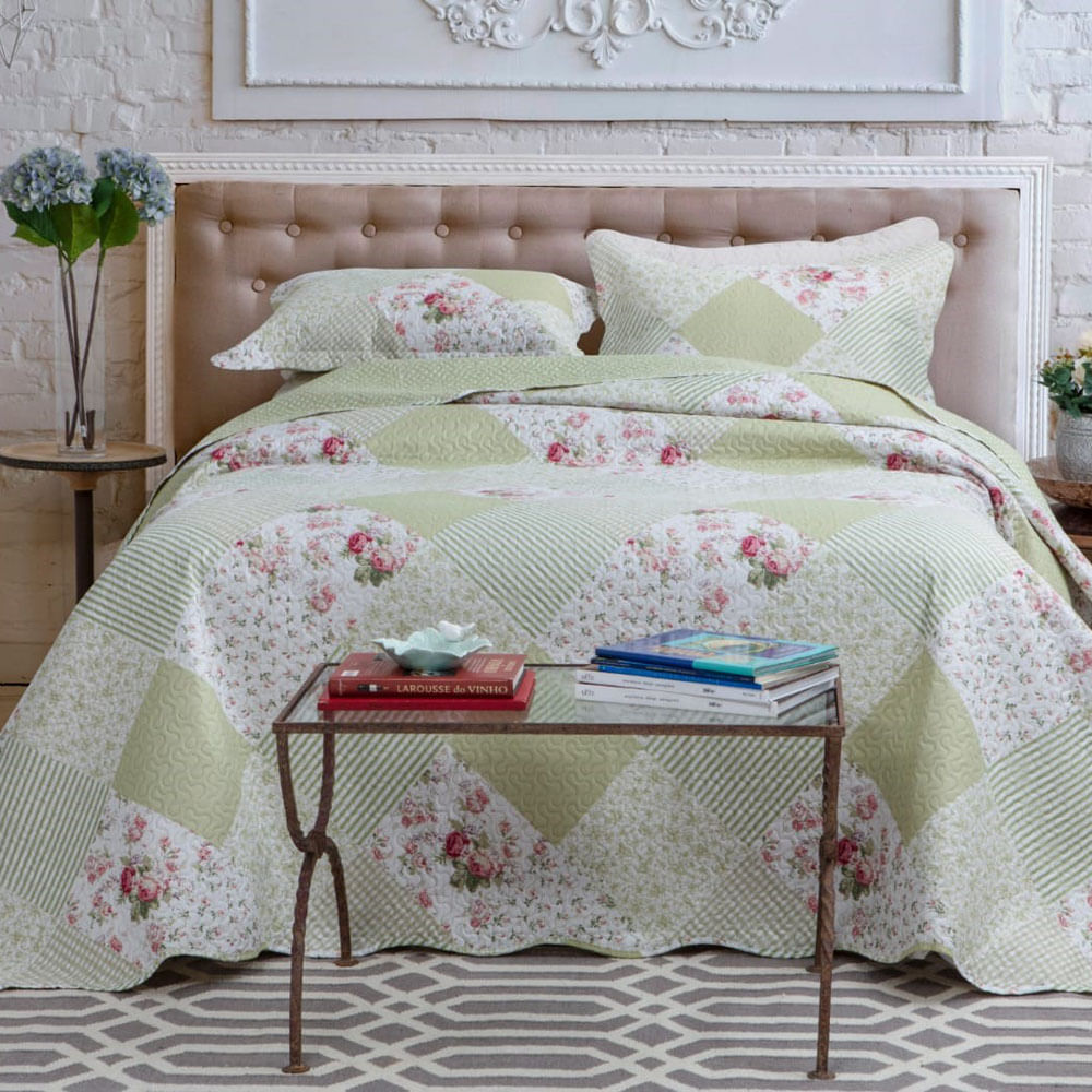 Kit Cobre Leito Colcha Casa Scarpa Mix Queen Estampado Dupla Face Floral 3 Peças - Naiara