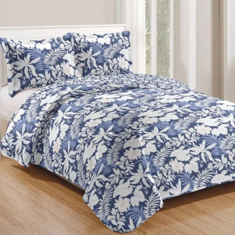 Kit Cobre Leito Colcha Daily King 3 Peças Dupla Face Estampado - Floral 41 - 100% Poliéster