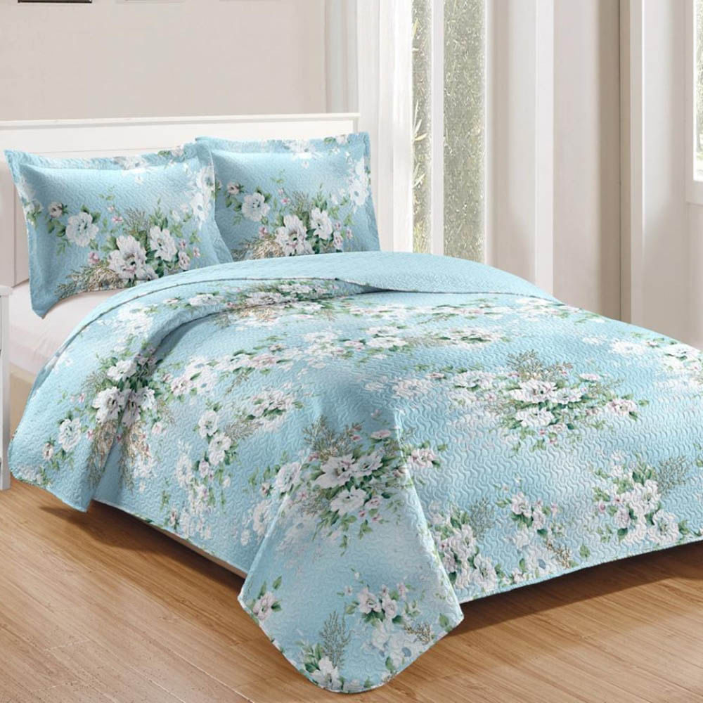 Kit Cobre Leito Colcha Daily Queen 3 Peças Dupla Face Estampado Floral - Floral 25 - 100% Poliéster