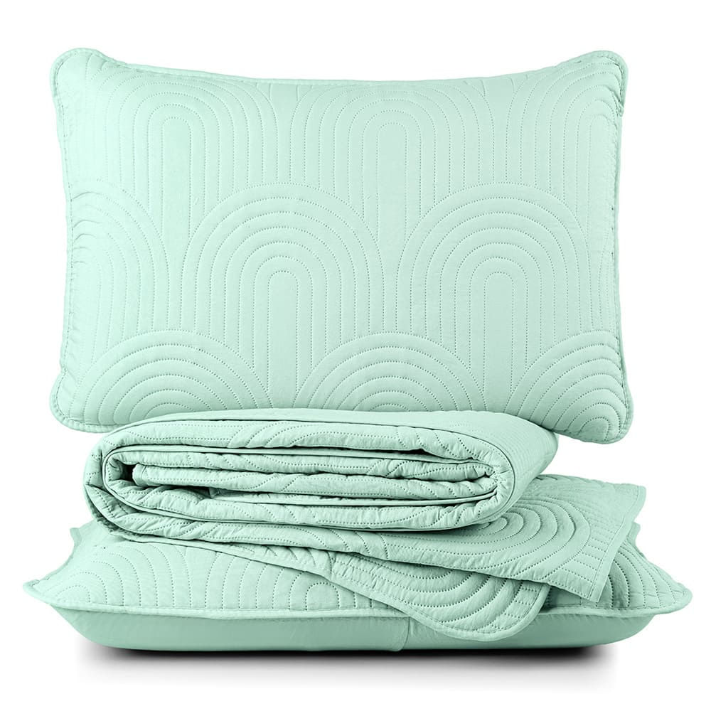 Kit Cobre Leito Colcha Harmony King 3 Peças Matelado Micropercal 200 Fios - Verde Suave - 100% Poliéster