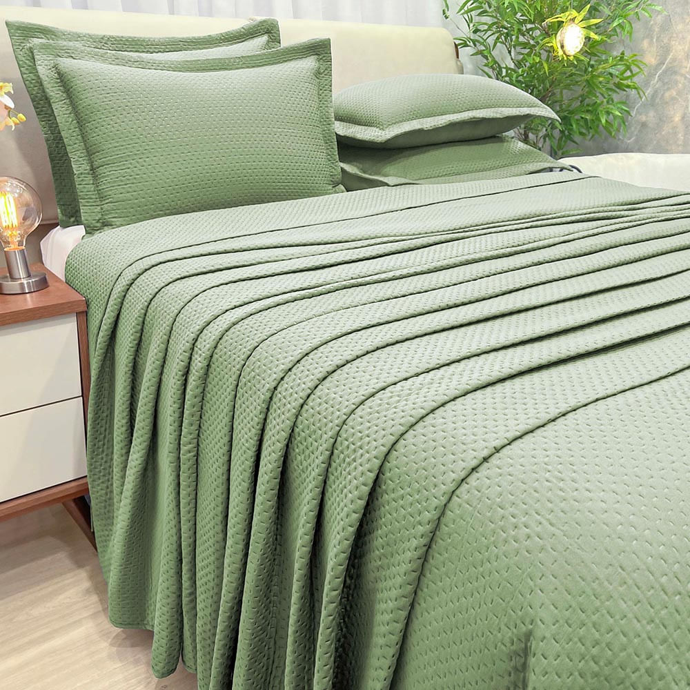 Kit Cobre Leito Colcha Jade Queen 3 Peças Percal 300 Fios Clássico - Verde - 100% Poliéster