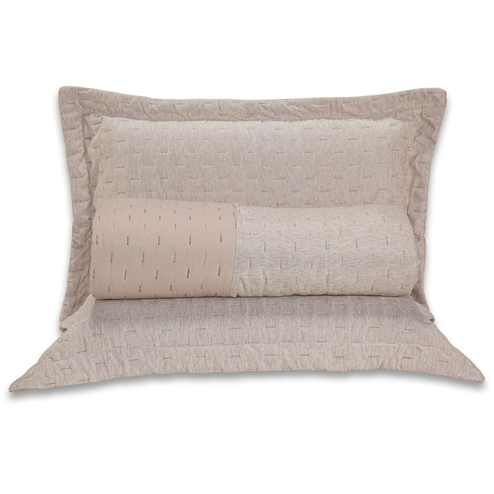 Kit Cobre Leito Colcha King Blend Percal 300 Fios Dupla Face Linho Mesclado Com Fronhas 03 Peças Cor Bege