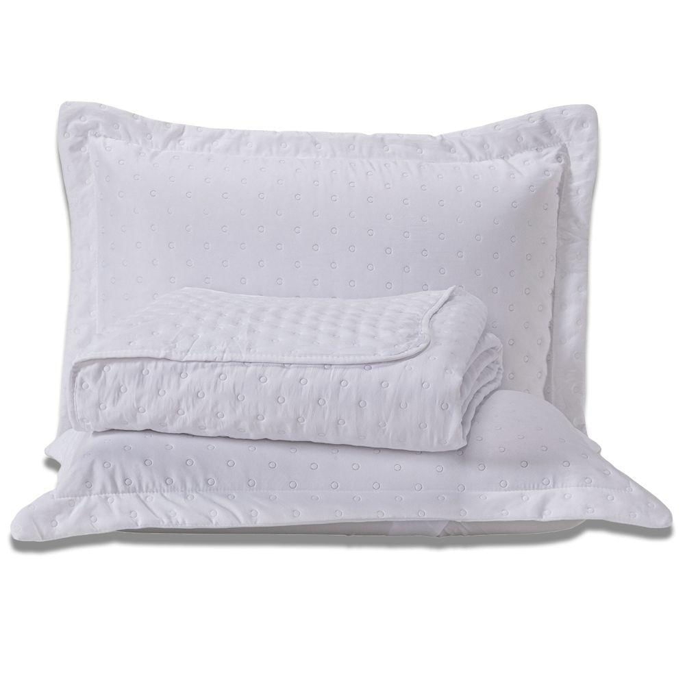Kit Cobre Leito Colcha King Sublime Dupla Face Com Fronhas 03 Peças - Percal 300 Fios Toque De Pluma Cor Branco