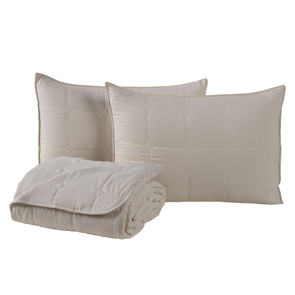 Contêm na embalagem 03 PEÇAS, SENDO: 01 Cobre Leito 2,60m x 2,40m 02 Porta Travesseiro 70cm x 50cm
