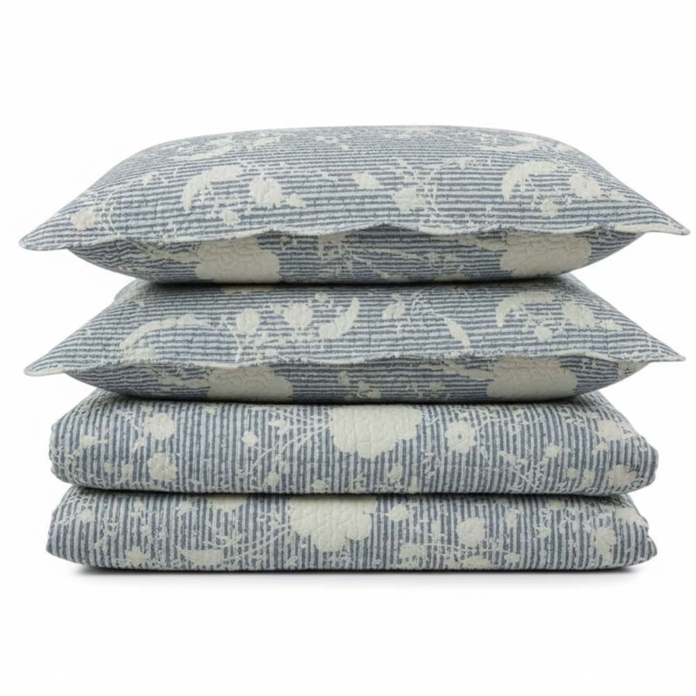 Kit Cobre Leito Colcha Magnus King 3 Peças Dupla Face Estampado Floral - Azul - 100% Poliéster