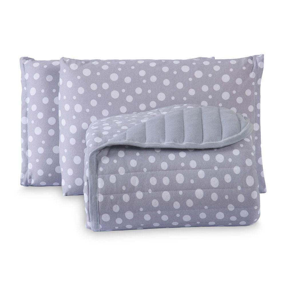 Kit Cobre Leito Colcha Polly Casal 3 Peças Malha 100% Algodão Estampa Bolinhas - Cinza