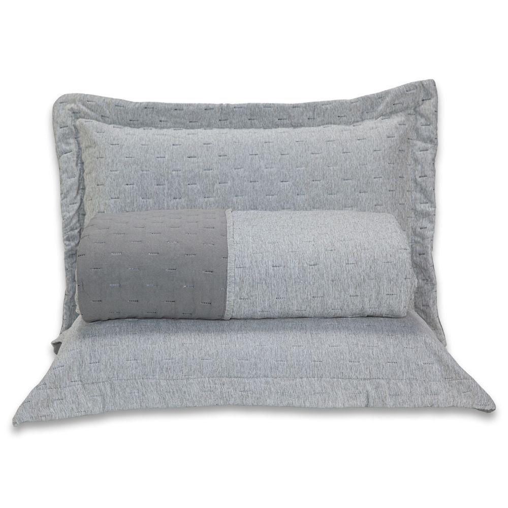 Kit Cobre Leito Colcha Solteiro Blend Percal 300 Fios Dupla Face Linho Mesclado Com Fronha 02 Peças Cor Cinza