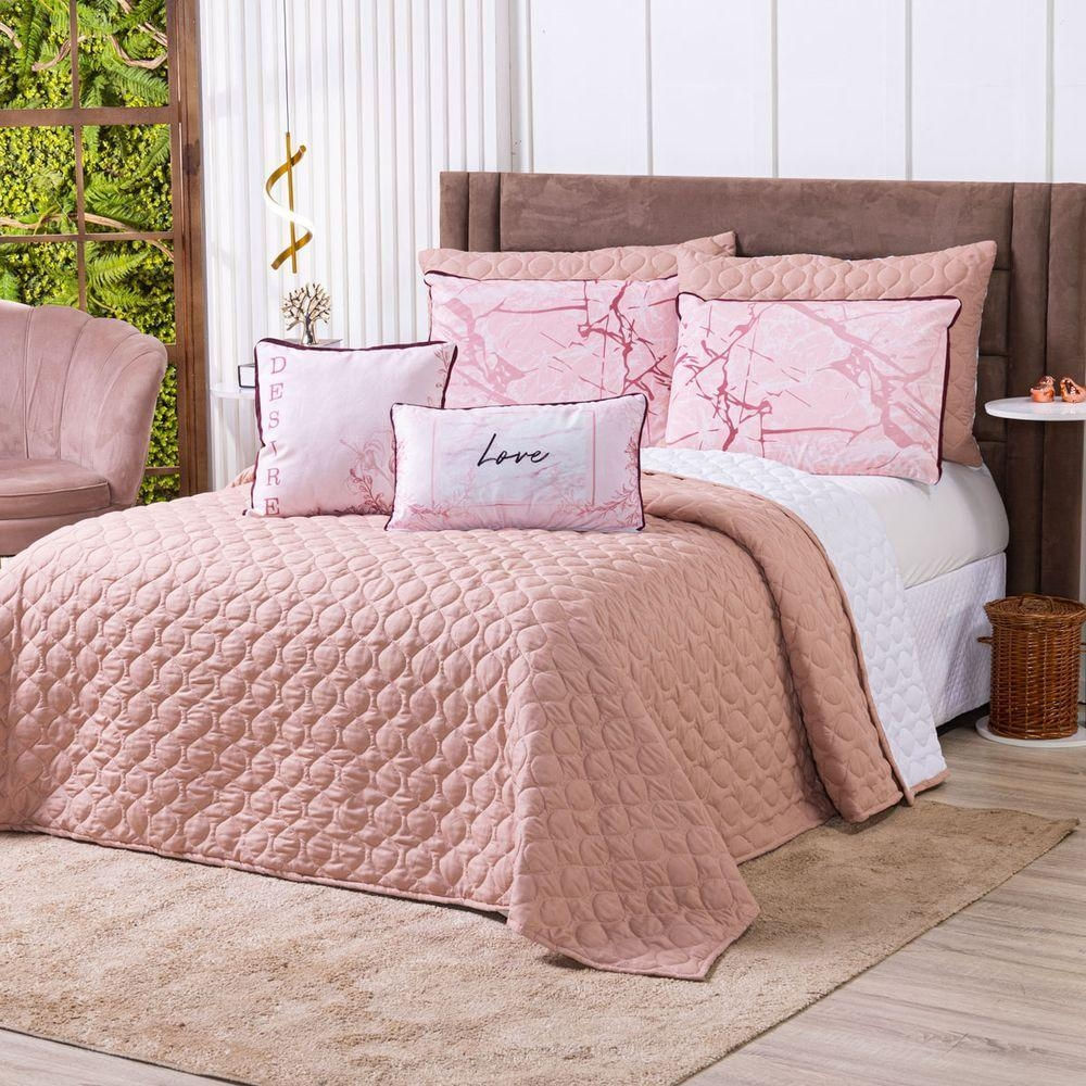 Kit Cobre Leito Colcha Solteiro Verano Com Almofadas Estampadas 05 Peças - Dupla Face Percal 300 Fios Matelado Cor Love