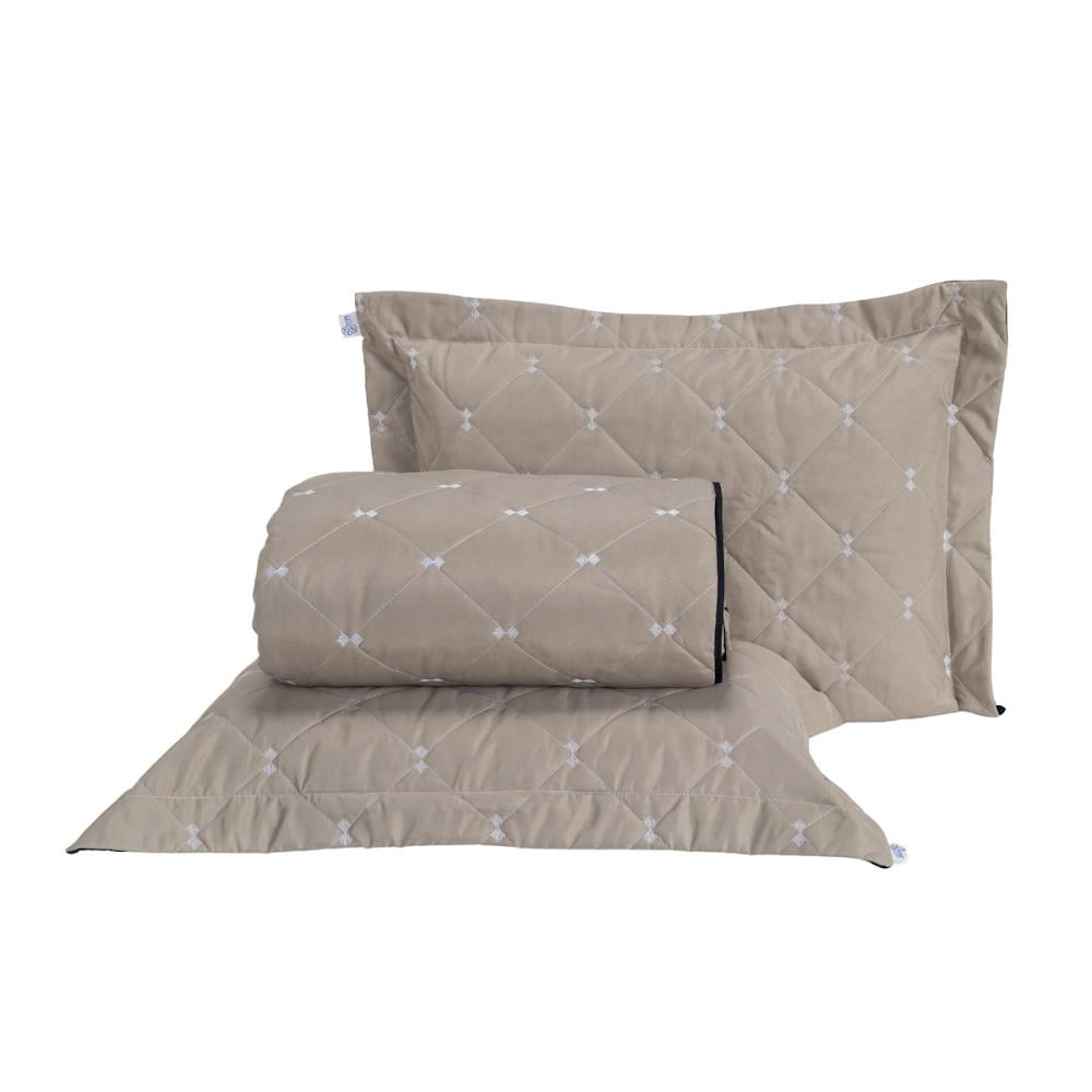 Kit Cobre Leito Dupla Face Casal Queen 3 Peças Bordado Essence Hipercal 400 Fios 100% Poliéster - Cáqui
