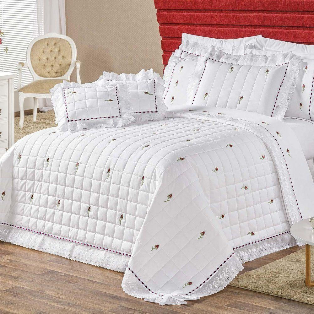 Kit Cobre Leito Felicitá Casal Queen 9 Peças Percal 200 Fios 100% Algodão Bordado - Marfim