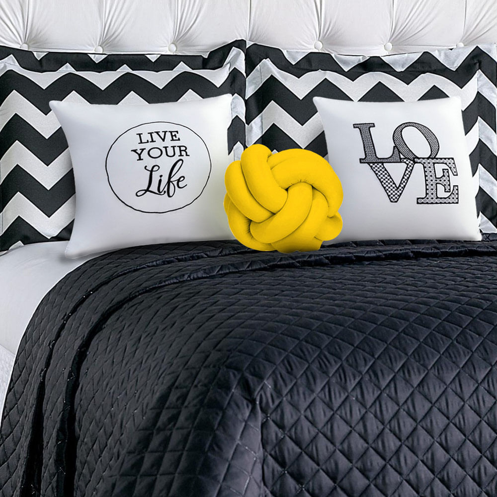 Kit Cobre Leito My Love Casal Padrão Microfibra c/ Almofada Nó Amarela 8 Peças - Preto