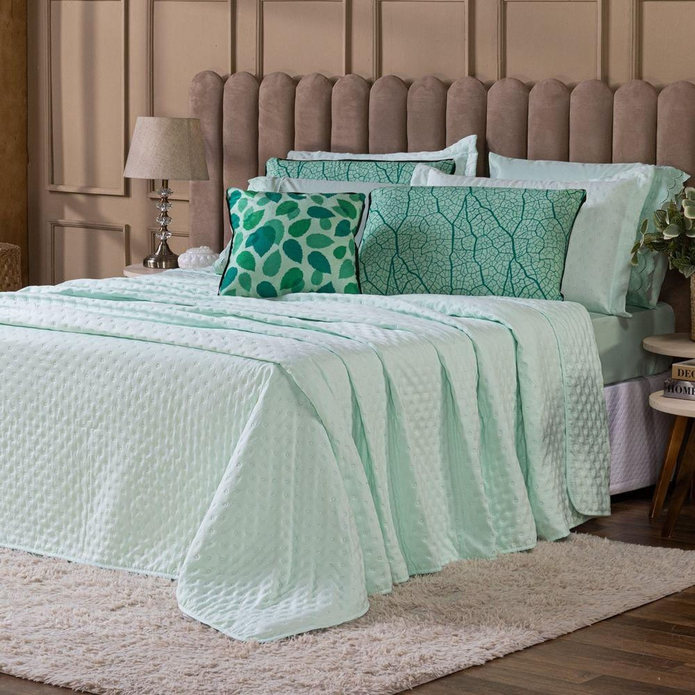 Kit Cobre Leito Provence Percal 300 Fios Toque De Pluma Dupla Face Com Almofada King 06 Peças Cor Verde Menta