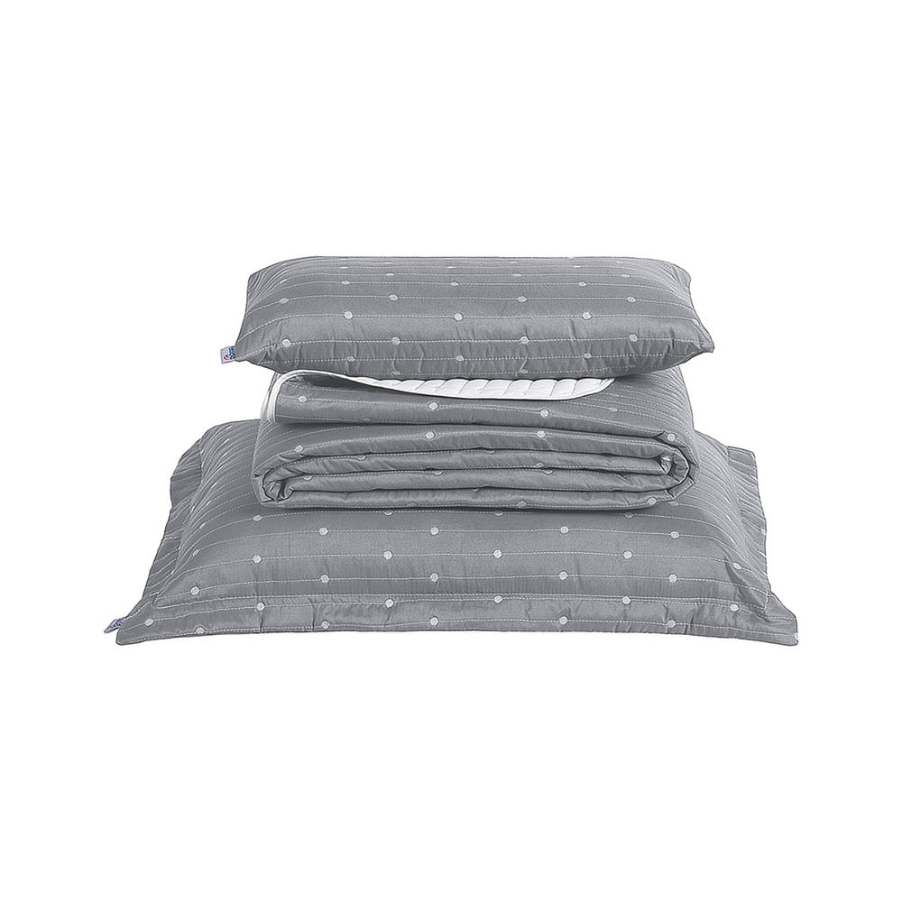 Kit Cobre Leito Solteiro + Almofada 4 Peças Bordado Urbany Hipercal 400 Fios 100% Poliéster - Cinza