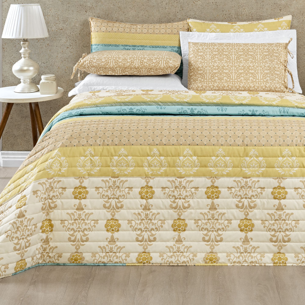 Kit Cobre Leito Sparta King Dupla Face Micropercal 200 Fios Estampado 3 Peças - Mostarda Arabesco