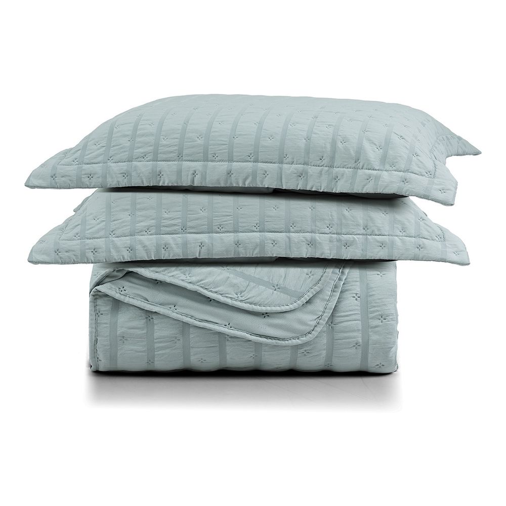 Kit Colcha Cobre Leito Plissê Casal Seersucker Premium 3 Peças Maciez e Leveza com Textura 3D Verde Essencial