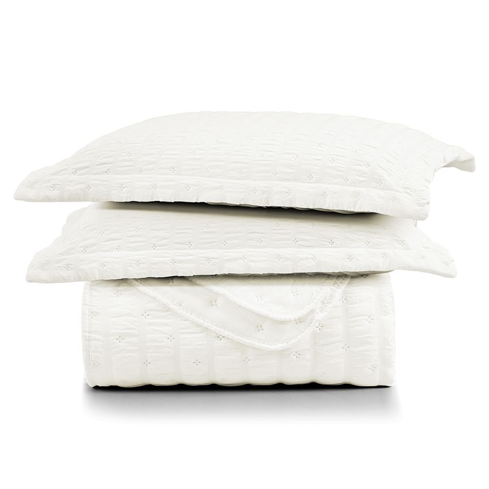 Kit Colcha Cobre Leito Plissê Queen Seersucker Premium 3 Peças Maciez e Leveza com Textura 3D Palha Marfim