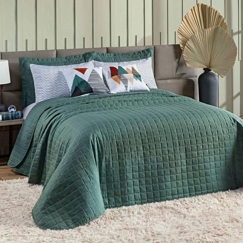 Kit Colcha Matelassê Percal 300 Fios Basic Casal 07 Peças 100% Poliéster - Verde Mountains