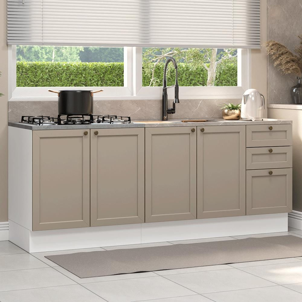 Kit com 2 Balcões de Cozinha 3 Gavetas 4 Portas (Sem Tampo e Pia) Branco/Crema Vik Madesa 01 Branco/Crema