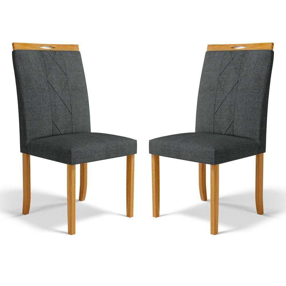 Kit Com 2 Cadeiras Ana Madeira Maciça Estofadas Para Mesa De Jantar Linho Chumbo 406