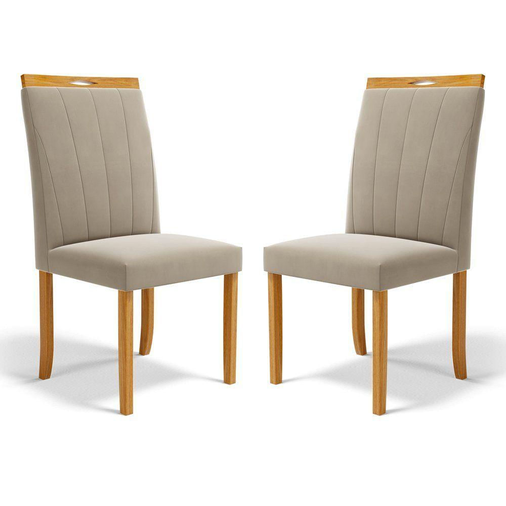 Kit Com 2 Cadeiras Aurora Madeira Maciça Estofadas Para Mesa De Jantar Veludo Bege 102