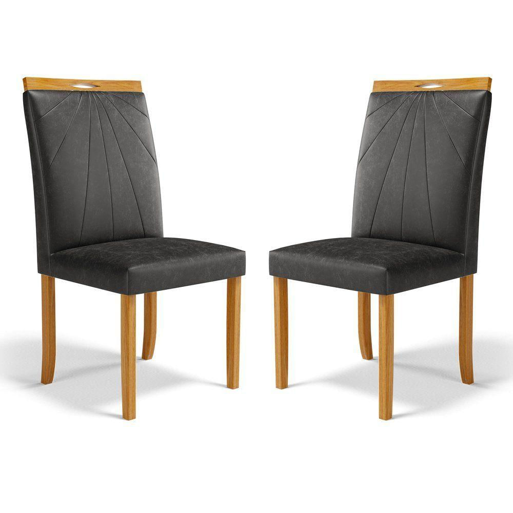 Kit Com 2 Cadeiras Maiara Madeira Maciça Estofadas Para Mesa De Jantar Courino Preto 503