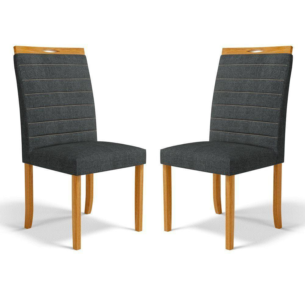 Kit Com 2 Cadeiras Sara Madeira Maciça Estofadas Para Mesa De Jantar Linho Chumbo 406