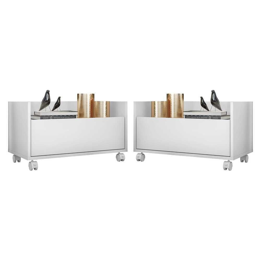 Kit Com 2 Mesas De Cabeceira 60Cm Com Rodízios Multimóveis V3635 Branca Branco