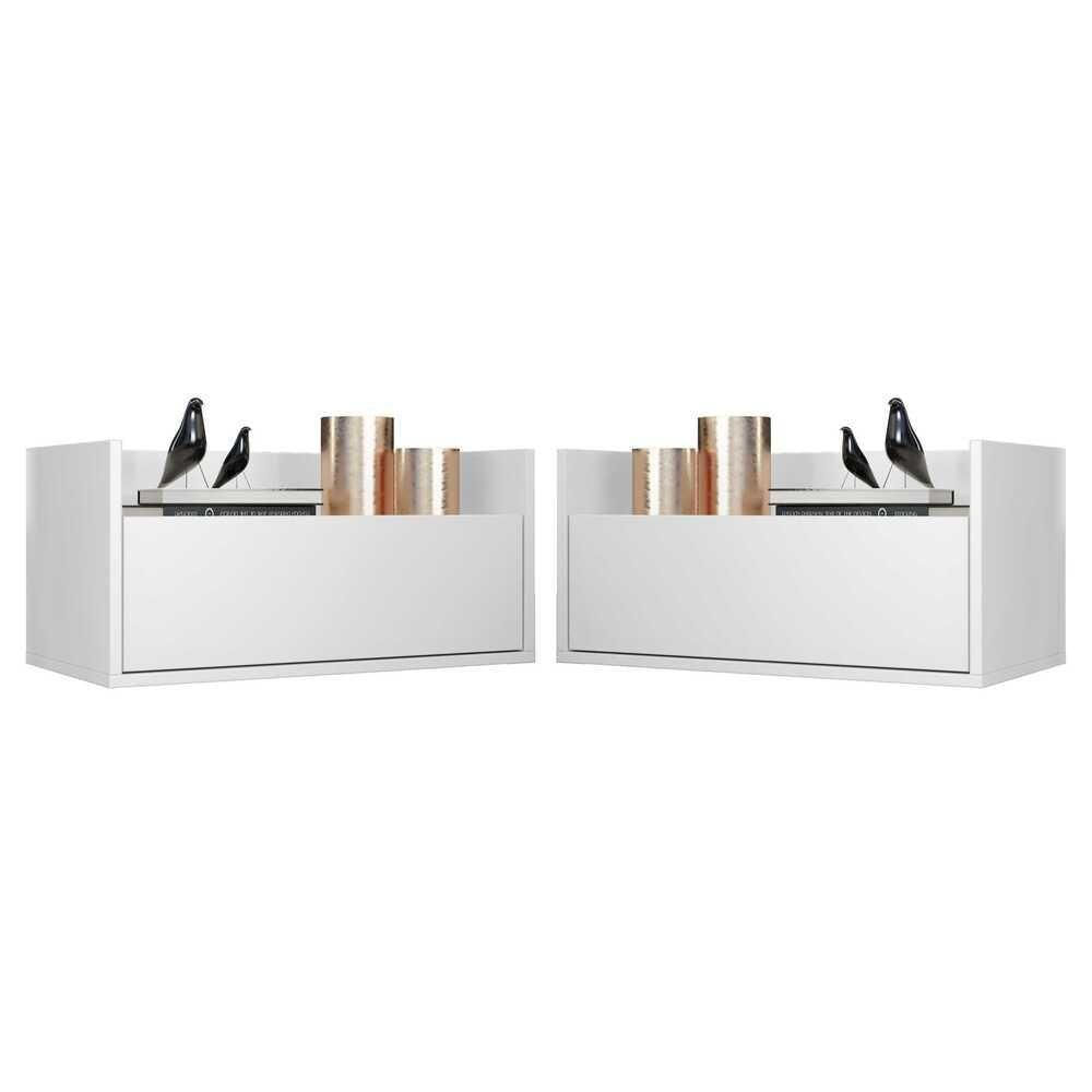 Kit Com 2 Mesas De Cabeceira 60Cm Suspensa Multimóveis V3632 Branca Branco