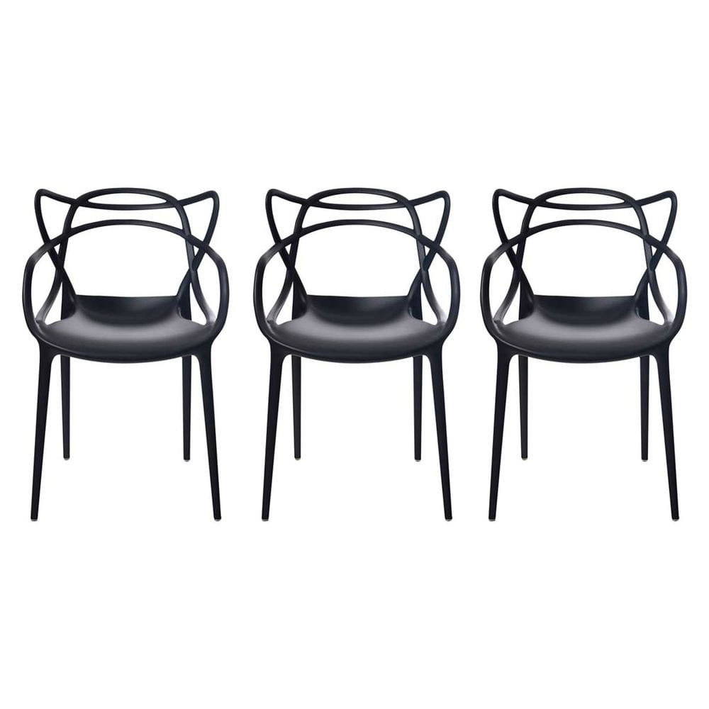 Kit com 3 Cadeira Allegra Masters Polipropileno Sala,Cozinha, Jantar, Empilhavel Preta
