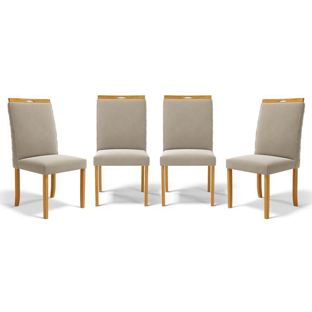 Kit Com 4 Cadeiras Agnes Madeira Maciça Estofadas Para Mesa De Jantar Veludo Bege 102