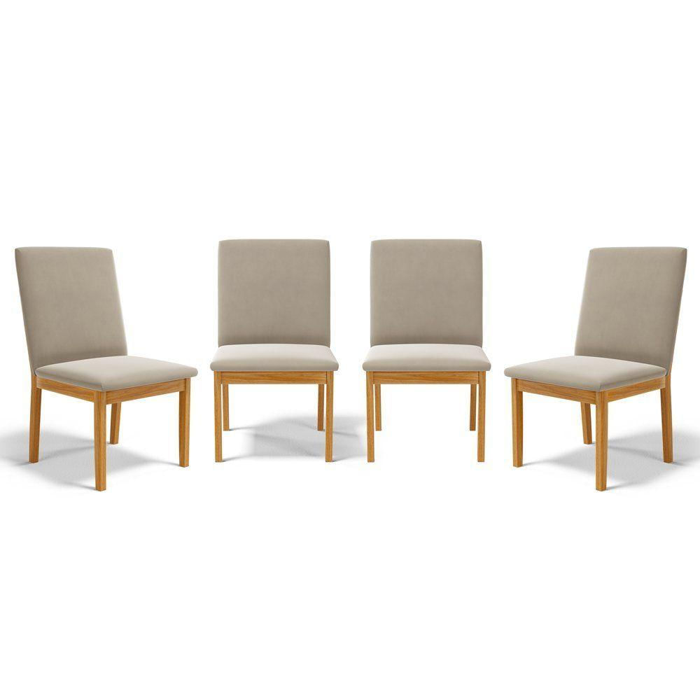 Kit Com 4 Cadeiras Daniela Madeira Maciça Estofada Para Mesa De Jantar Veludo Bege 102