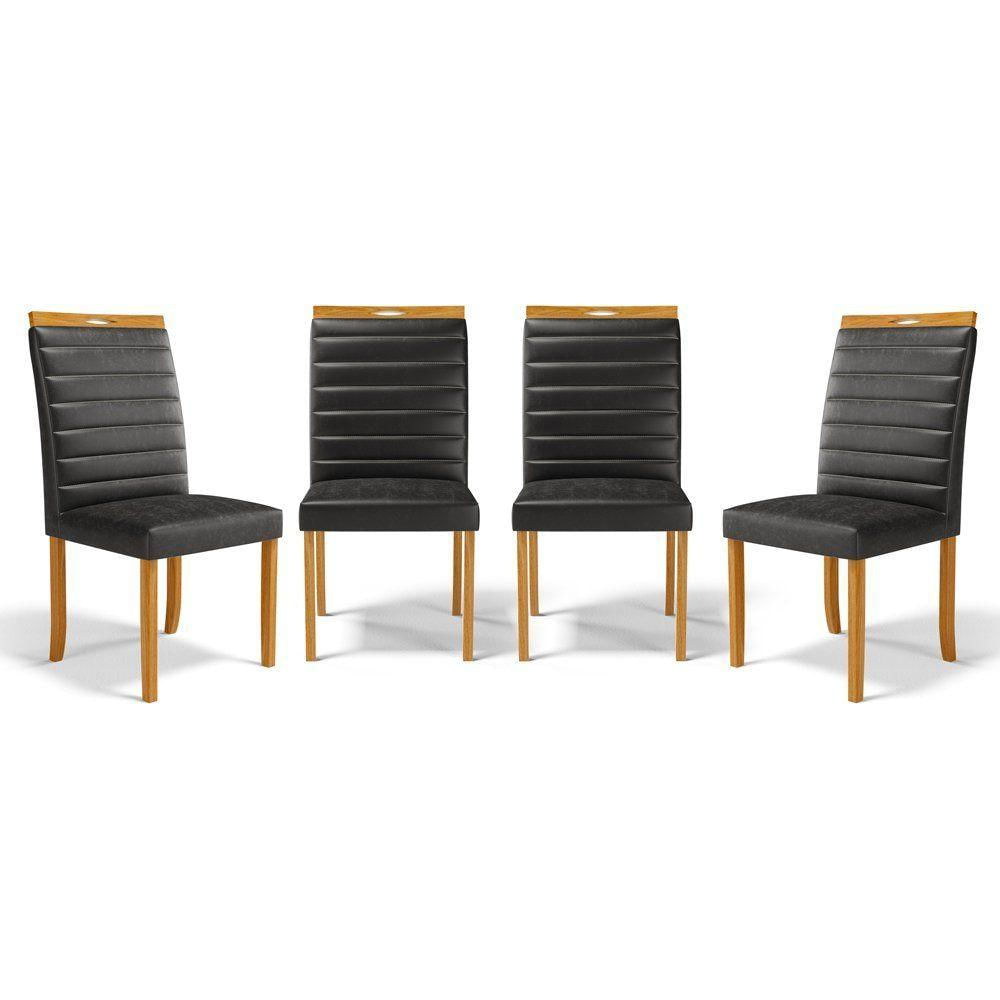 Kit Com 4 Cadeiras Sara Madeira Maciça Estofadas Para Mesa De Jantar Courino Preto 503