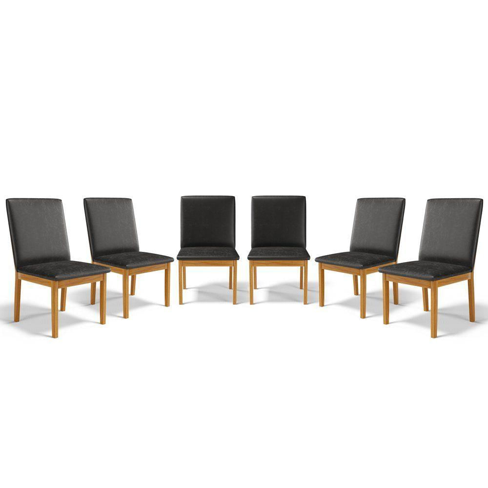 Kit Com 6 Cadeiras Daniela Madeira Maciça Estofada Para Mesa De Jantar Courino Preto 503